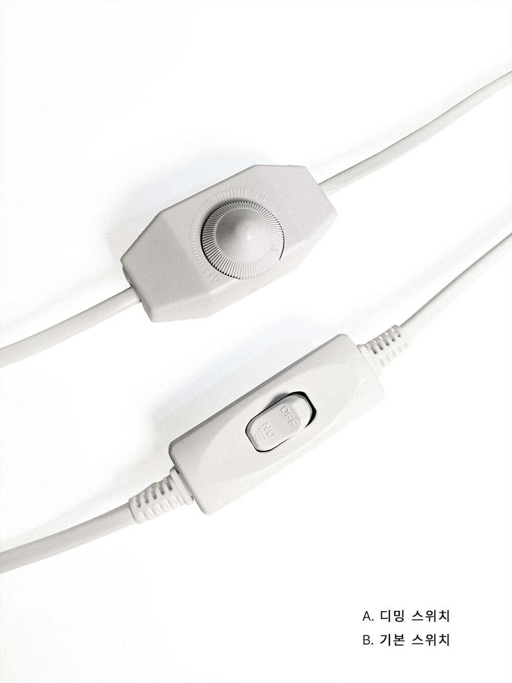 * 50W ~ 150W 까지 밝기 조절이 가능한 디밍 스위치를 추가 하실 수 있습니다. (추가 구성 탭에서 선택 가능합니다.) 선택 하지 않을 시 두가지 조명 모두 기본 B 스위치로 조립되어 발송됩니다.